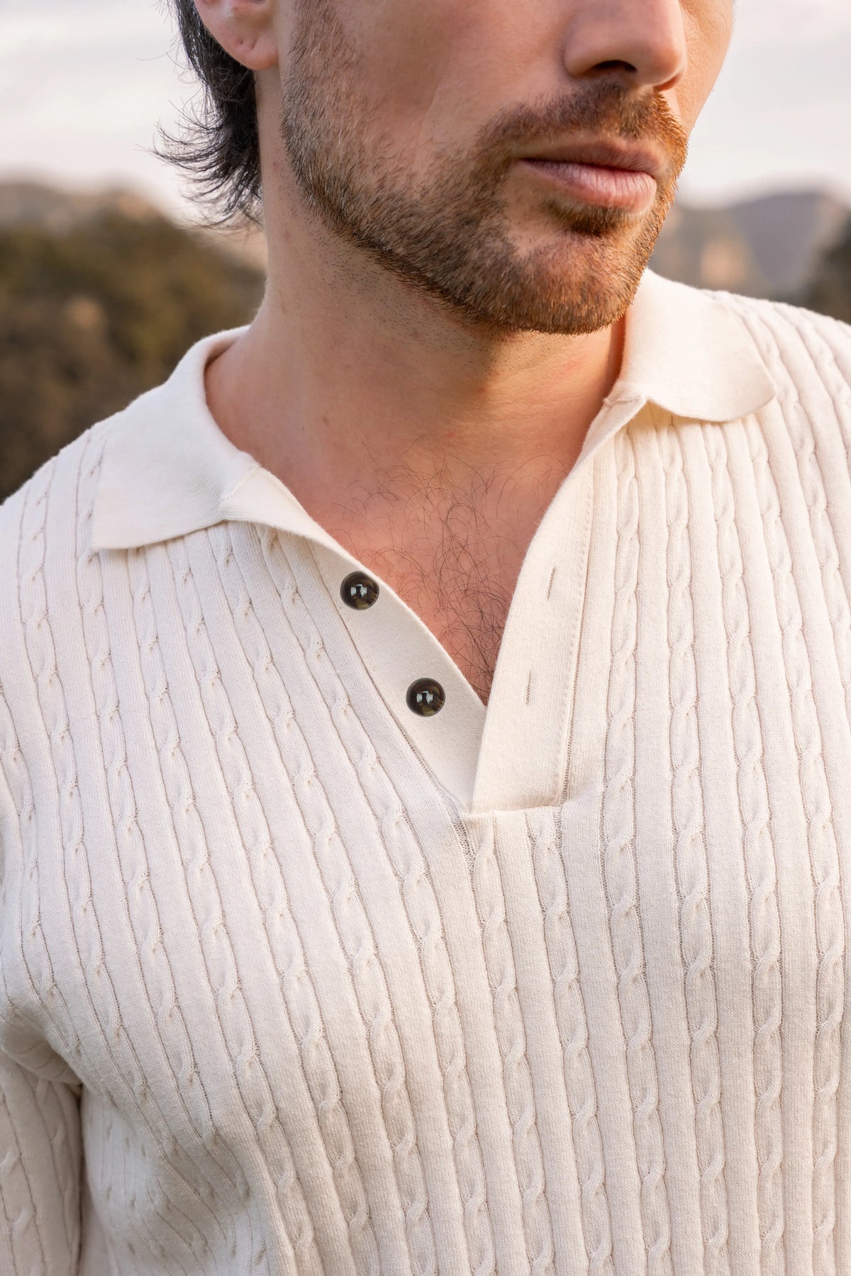 La Polo Tejida confirma que hay clásicos que no necesitan reinventarse, solo afinarse. Su tejido con textura trenzada aporta profundidad visual y una estructura suave que acompaña el cuerpo con naturalidad. Disponible en crudo y gris, es una prenda que equilibra lo relajado y lo pulido con precisión.
