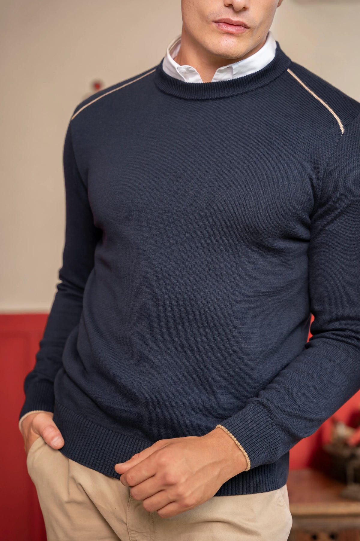 Disponible en tonos neutros fáciles de combinar, este suéter se adapta con naturalidad tanto a looks formales como casuales.